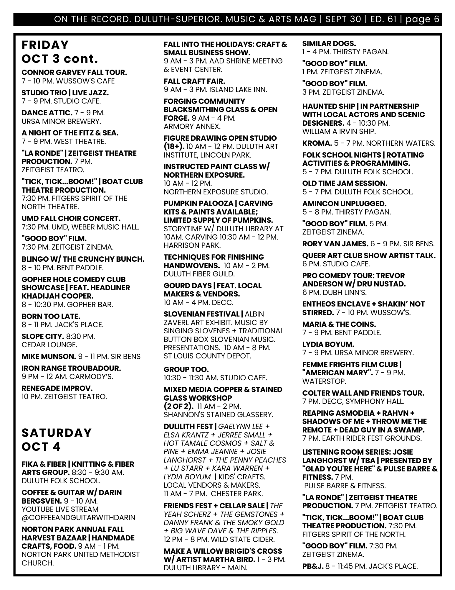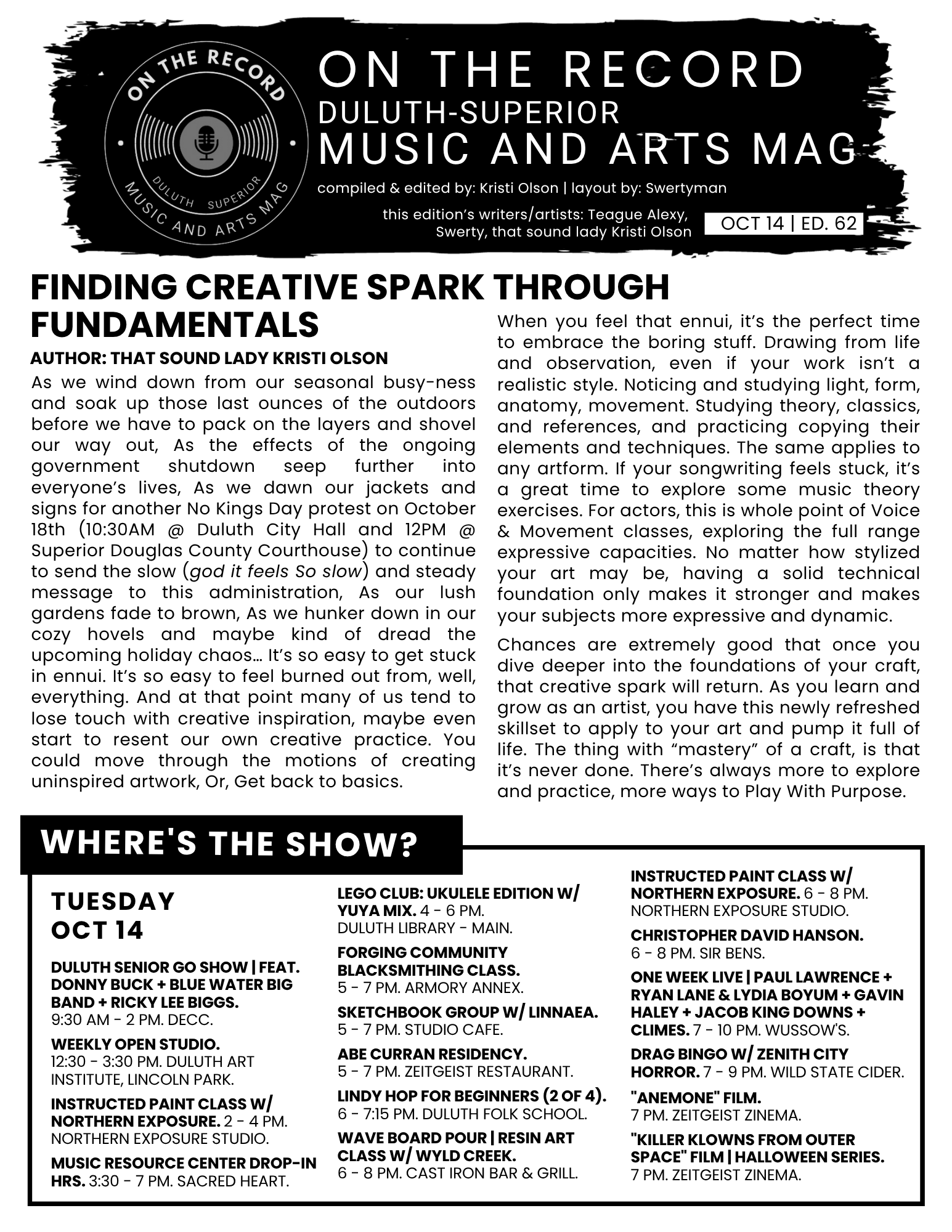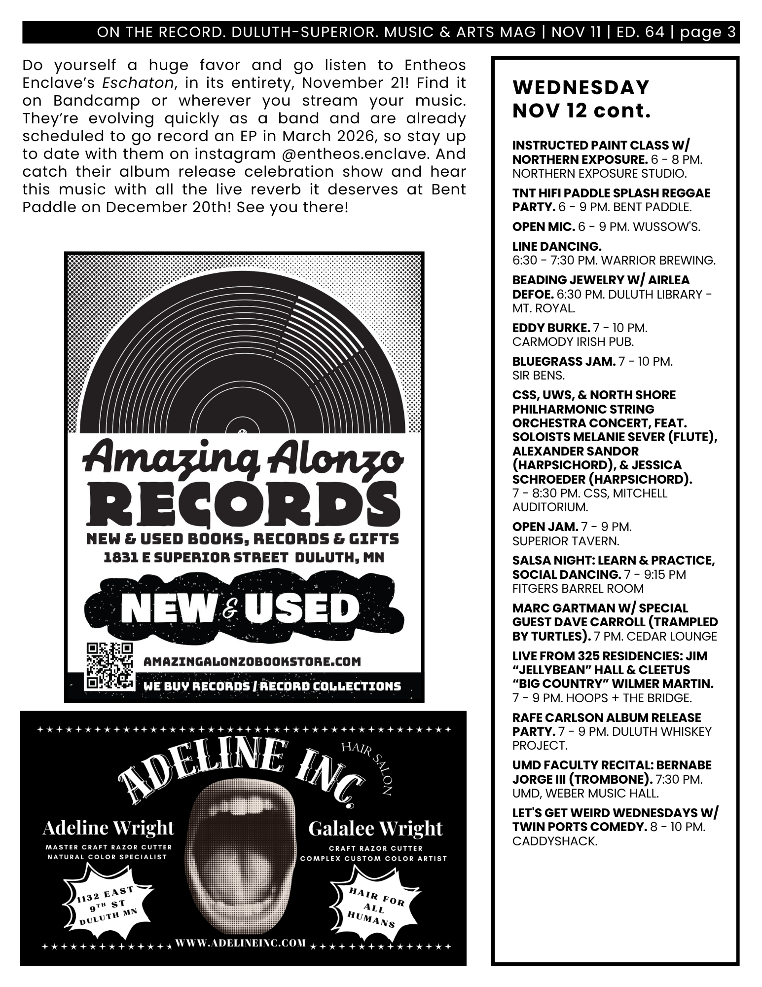 - Resolute listing of music, theatre, art, & indie film events in Duluth-Superior.